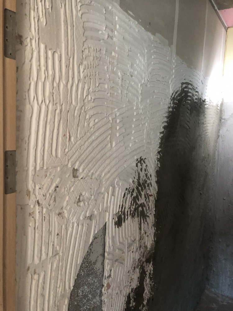 타일 밥이라고 해야하나요 압착시멘트가 완전히 제거가 안된 상태에서