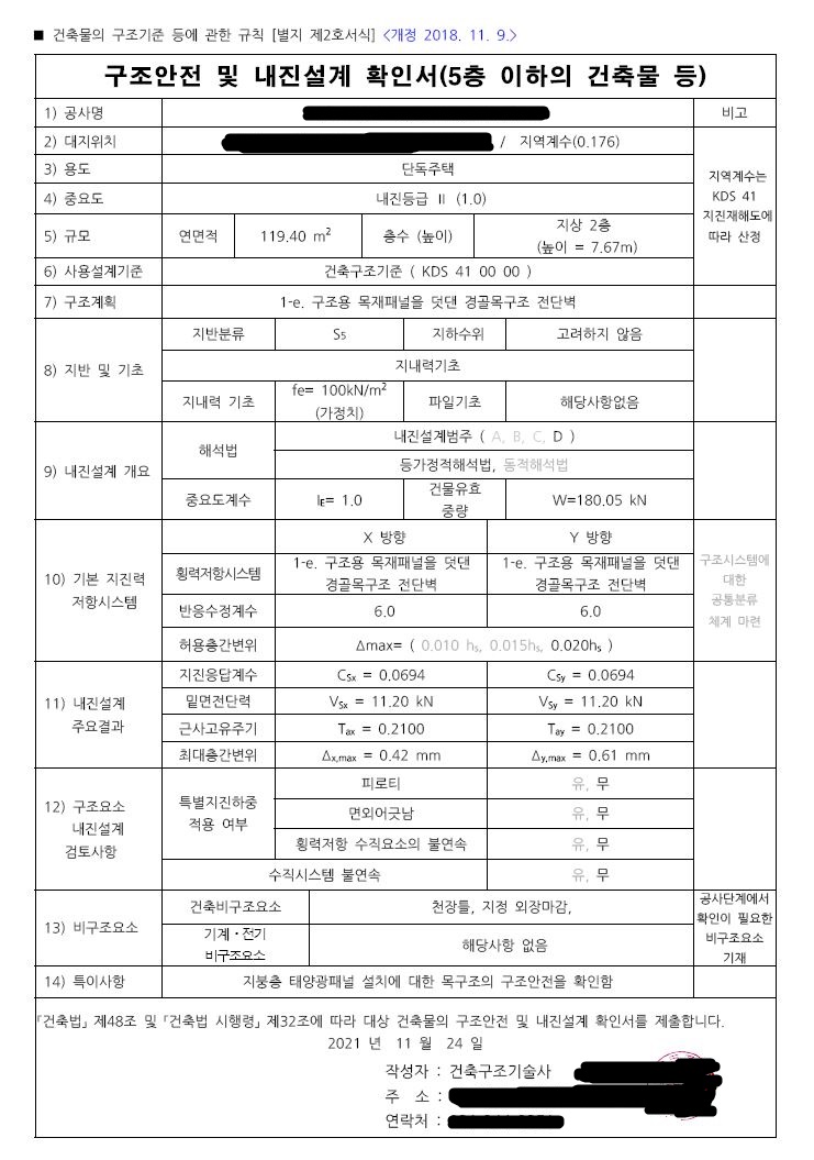 이 구조확인서는 태양광 회사에서 할 수는 없고, 건축주가 태양광 회사에게 제공을 해 주어야 합니다.