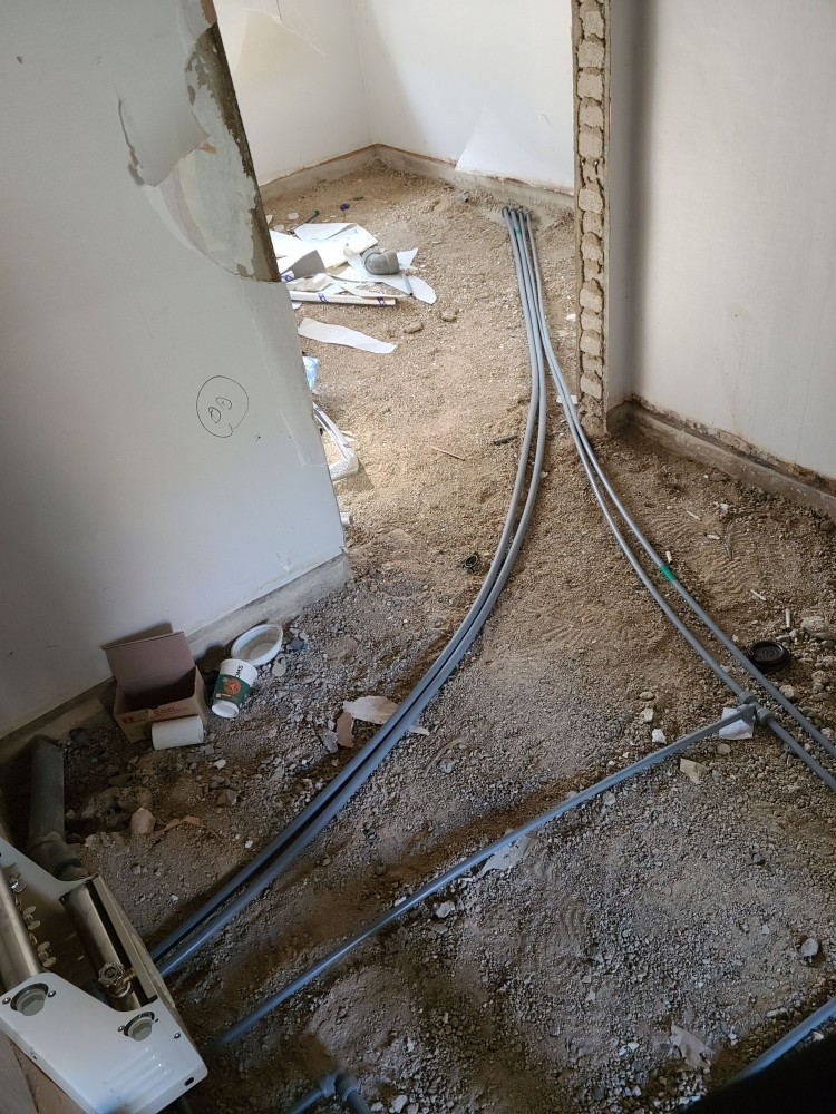 1. 바닥의 상태를 배관하시는 분이 정리를 하면서 배관을 하지는 않습니다. 그래서 그냥 이 상태에서 배관을 깔아 놓은 결과인데요.. 이 것은 시공 전체를 총괄하는 누군가가 있다면. 그 분의 잘못입니다.