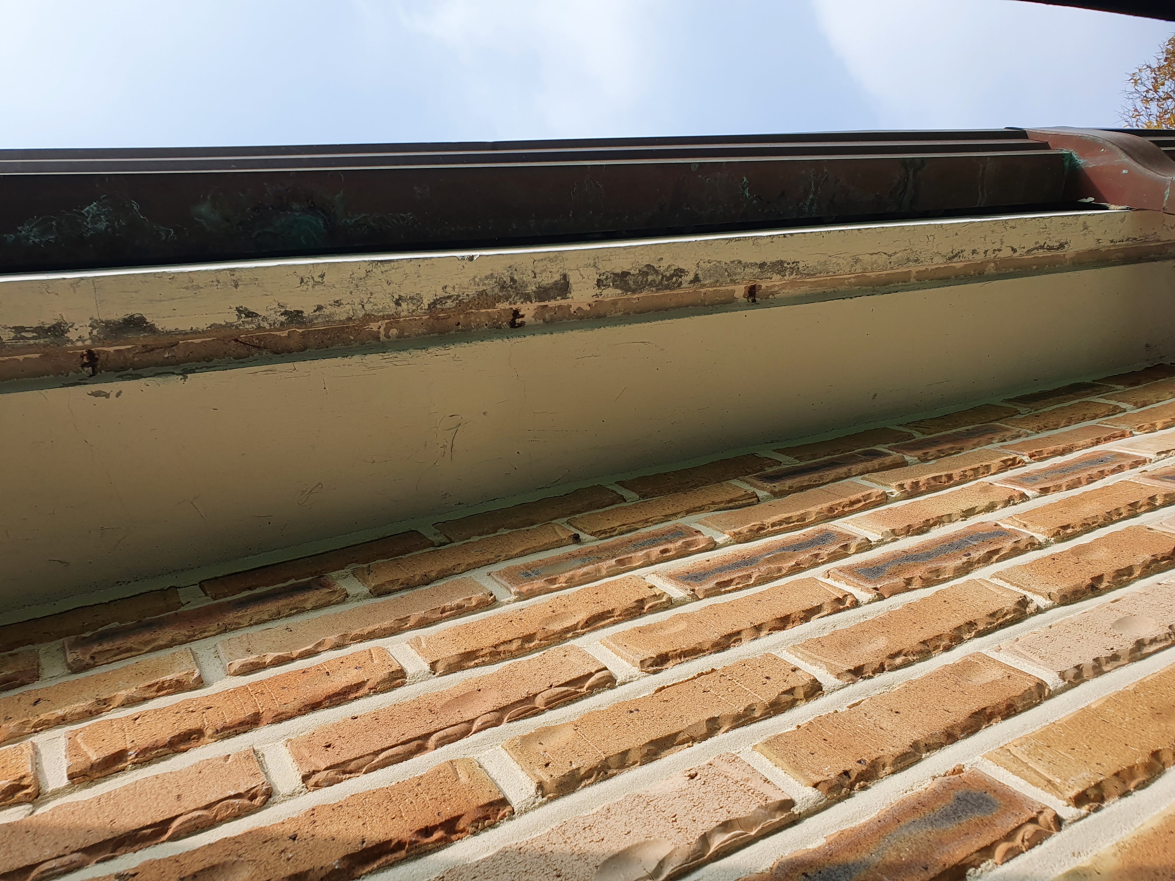2층 조적벽은 시멘트 벽돌에 미장을 해서 조적턱을 만들어 벽돌을 쌓아올렸는데 안쪽으로 방수층이 확보되어 있지 않습니다.