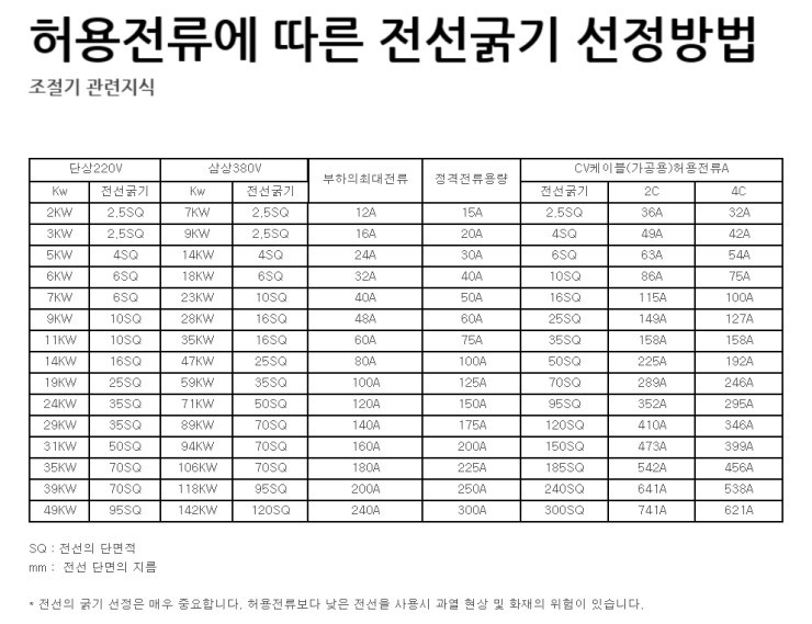 외부전기선은 몇 SQ이상을 사용해야되는지도 궁금합니다.