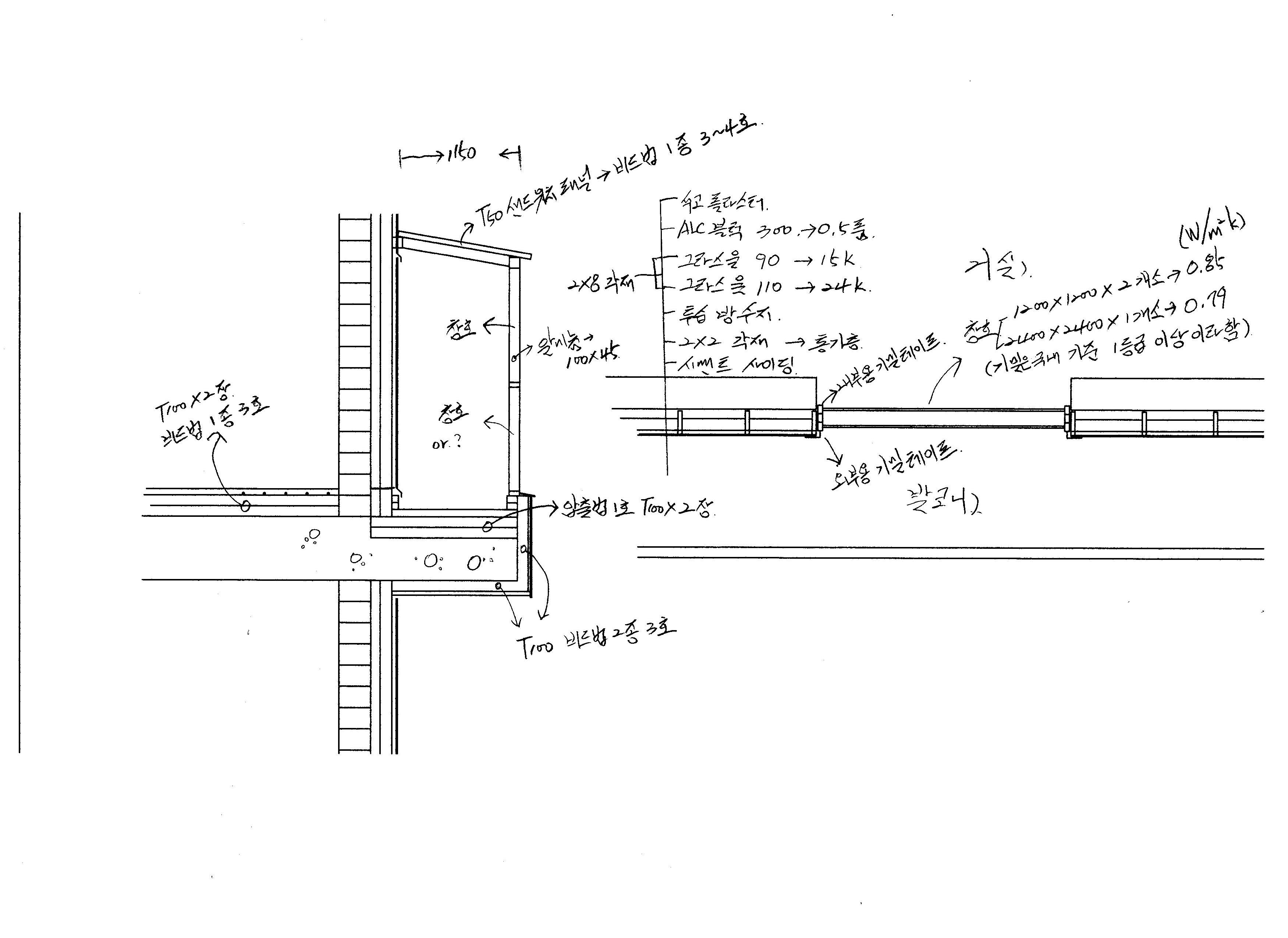 하부에서 1000까지는 샌드위치 패널 100T로 시공하고 그위는 일반 복층유리 pvc 창호를 설치