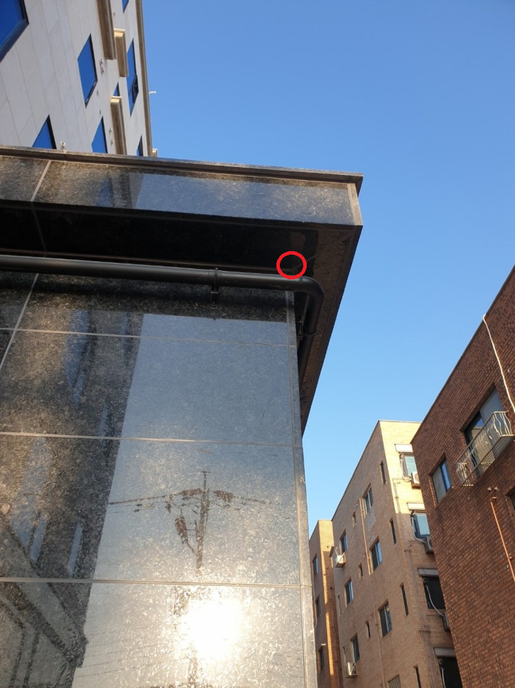 원래 도면상 저렇게 빨갛게 드레인이 있습니다만 지금보니 구멍이랑 선홈통도 없네요.