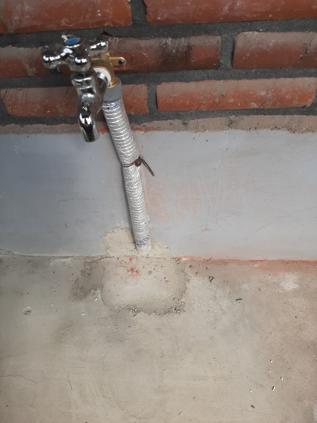 2층 집수리를(샷시, 내벽단열 등) 하면서 2층화장실을 통해 옥탑방(옥상=3층)에 새로 수도를 신설했는데, 2층 화장실에서 위로 천장(옥탑방 방바닥)을 뚫어서 수도를 내었습니다.