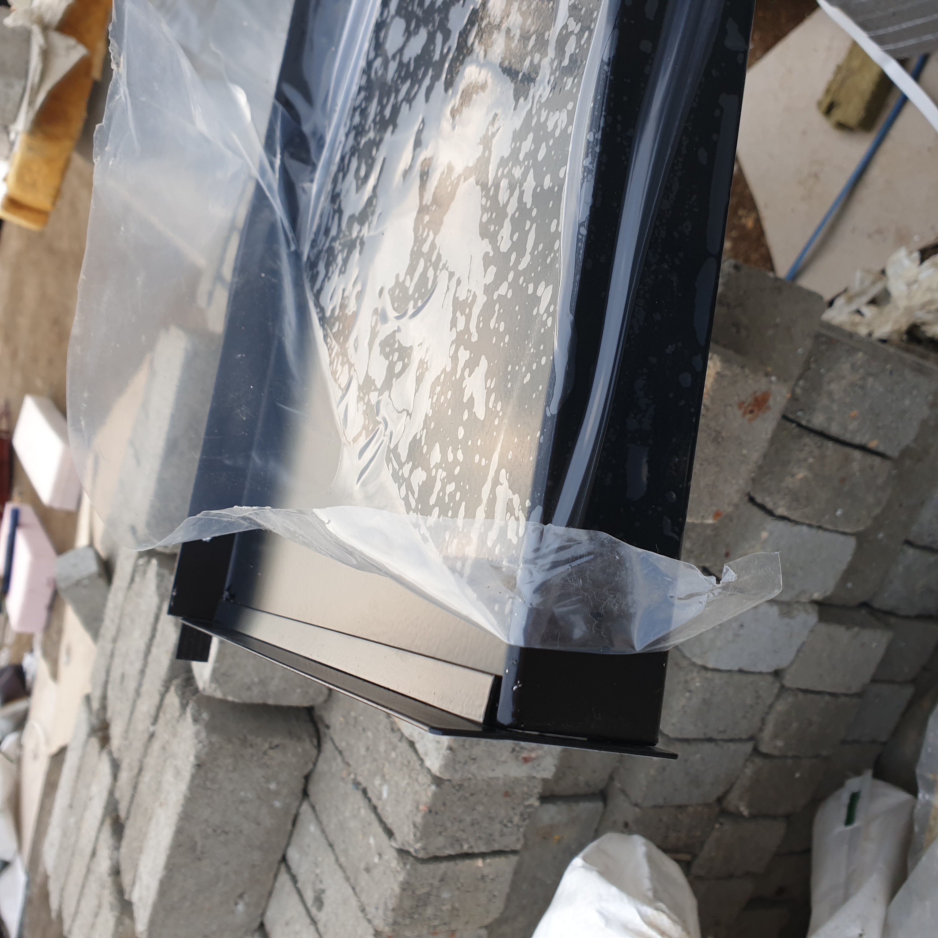 아직 창호 하단부 빗물받이가 설치되지 않았습니다
