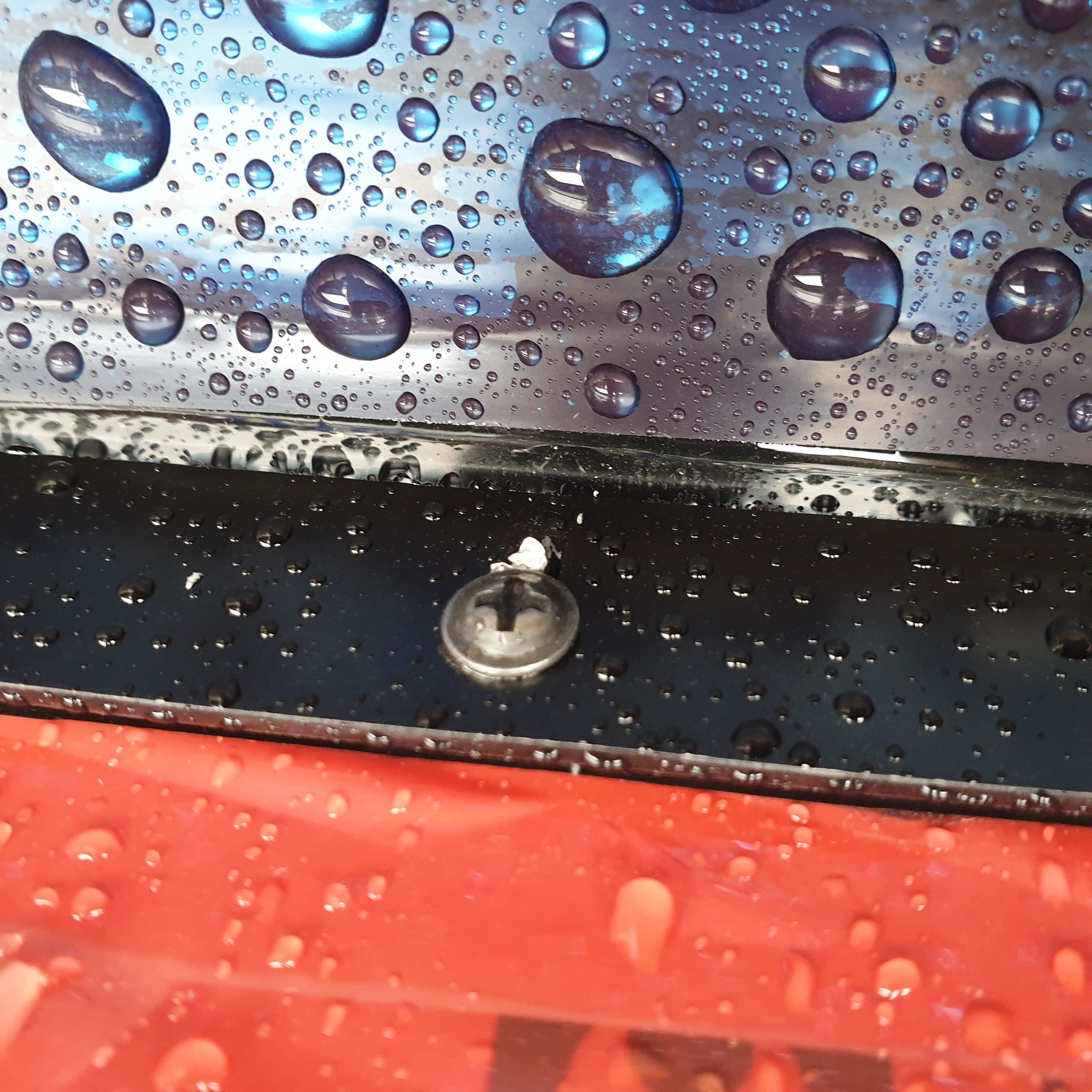 빗물받이 하단 연결부가 창틀외부면보다 약간 돌출되거 있습니다