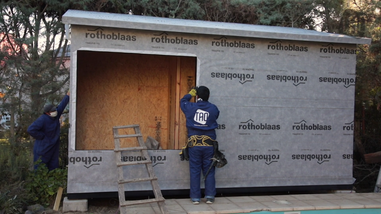 판넬 설치업자의 매뉴얼대로 구조를 설치하고 겉면에 방수투습지를 붙인후에 외장을 위해 레인스크린을 설치했습니다.