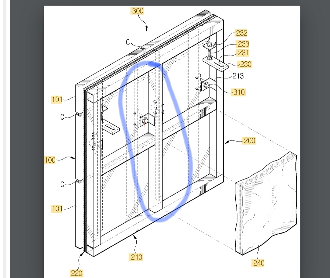 패널의 외부에서 내부의 각파이프까지 나사못을 관통시켜 고정하는 방식입니다.