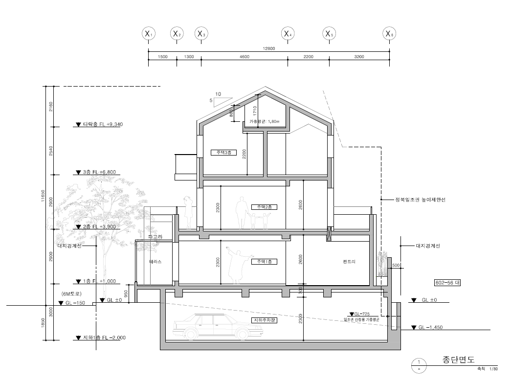 현재 토지 경사를 이용하여 지하층에 창고와 주차장을 계획하여 설계하고 있습니다.
