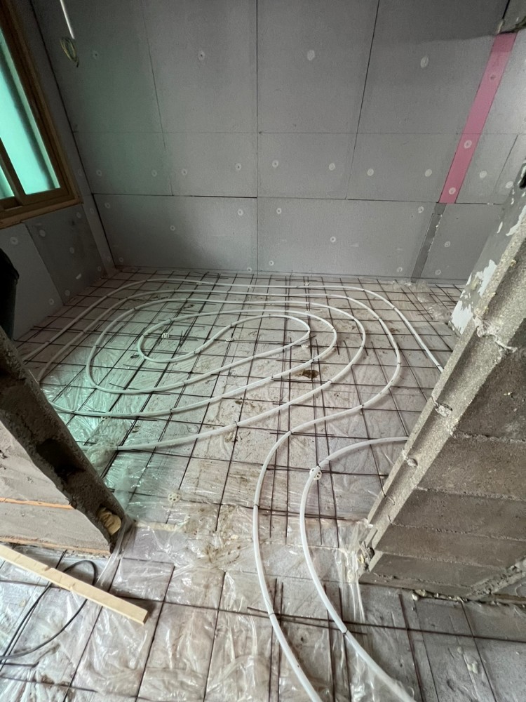 바닥전체가 들쑥날쑥해서 4cm부터 9cm까지 몰탈이 덮이기때문에 난방효율이 떨어질까 걱정됐는데,