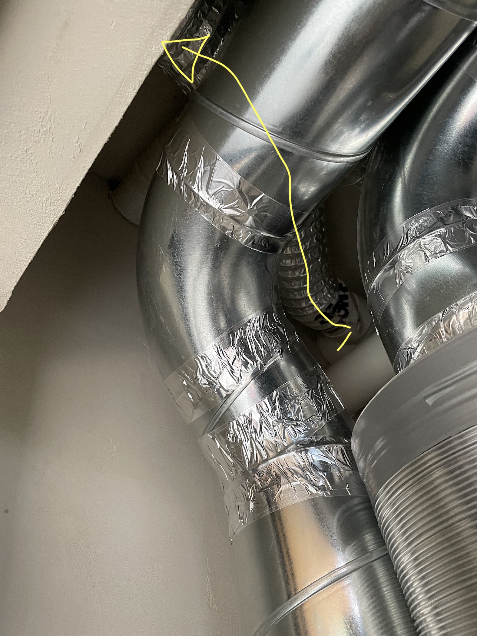 제가 실내쪽에 환풍기나 후드를 설치한 뒤, 두 번째 사진에서 pvc와 후렉시블 배관 연결된 곳에 중력댐퍼나 전동댐퍼를 설치하고, 다시 기존처럼 연결해줘야할 것 같습니다.