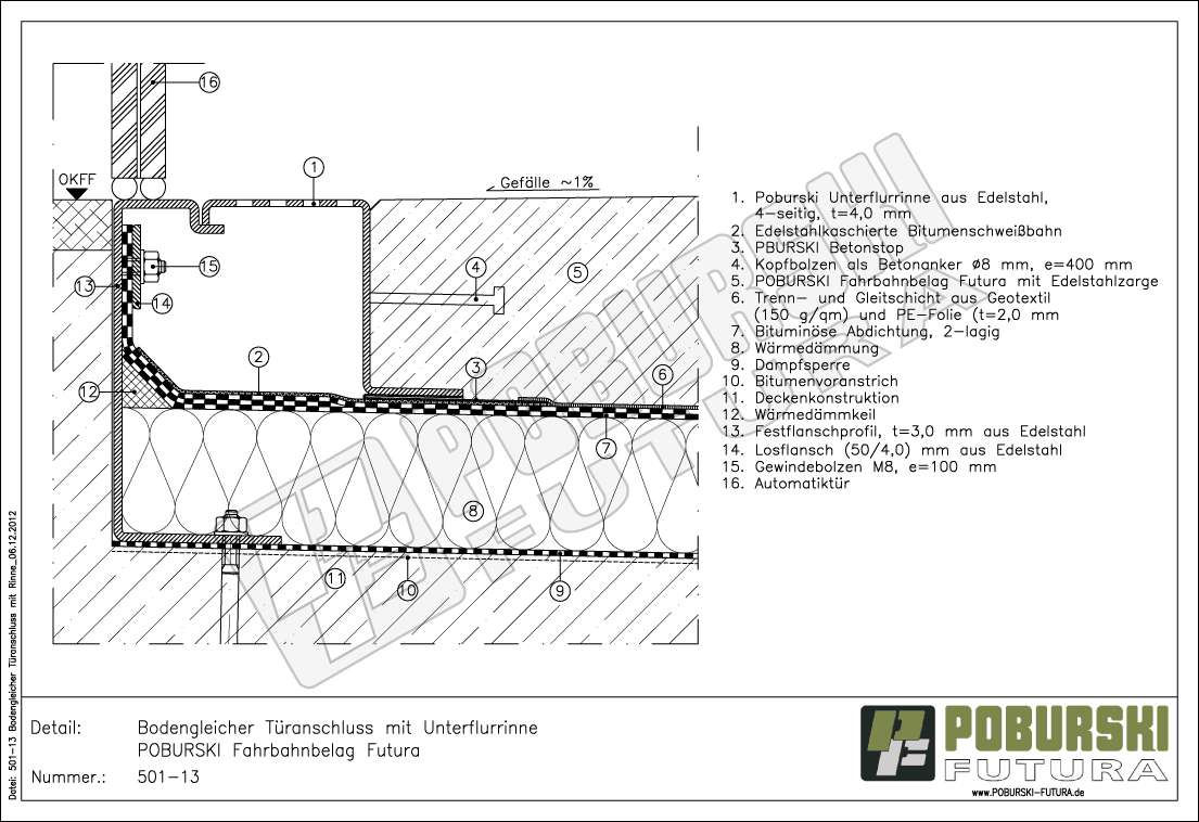 첨부문건을 보면 3가지 가능한 시공방법이 있으며 A방법이 위의 사진과 같은 개념으로 시공된 방법이고 B는 보도블록등을 이용해서 C는 현장 누름콘크리트라는 것을 적용한 것을 보여주며 그럴 경우는 배수를 위한 경사를 2,5%를 주라고 표기가 되어 있습니다.