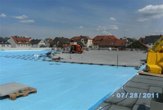현장타설을 하는 경우도 보기는 했는데 배수를 100% 표면에서 해야 하기에 경사가 최소 2%이상이었고 각각의 판을 약 2,5m x 2,5m로 끊고 신축줄눈을 사용해서 크렉이 생기는 것을 막는 경우도 보았습니다. 하지만 대부분은 지하주차장을 제외하고는 모두 건식공법이 주로 적용이 되는 것으로 압니다. 지하주차장의 경우는 경제적 여유가 있으면 아스팔트 방수쉬트 위에 아스팔트 모르타르를 약 40mm정도 두께로 시공을 합니다.