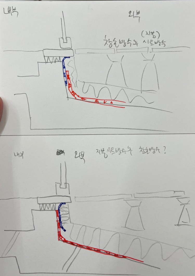 창호유격, 방수턱, 시트방수 방수 종류 등에 대한 질문
