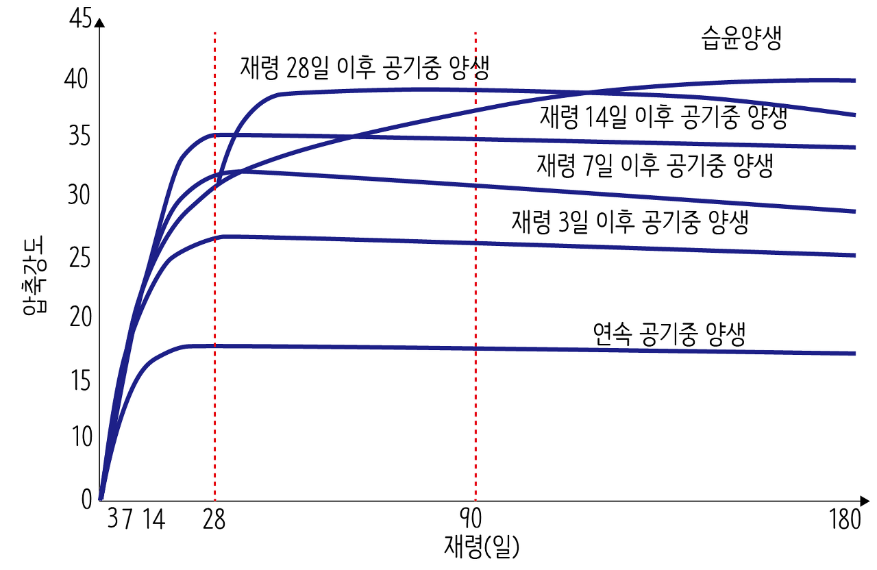 습윤 양생이 가능할경우 엄청난 강도를 보장 받습니다