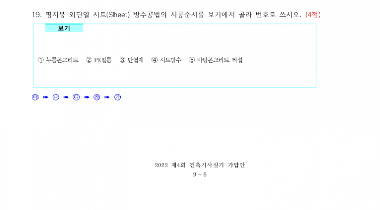 바탕콘크리트타설 - PE필름 - 단열재 - 시트방수 - 누름콘크리트가 답이라고 나왔다는 것인데요..