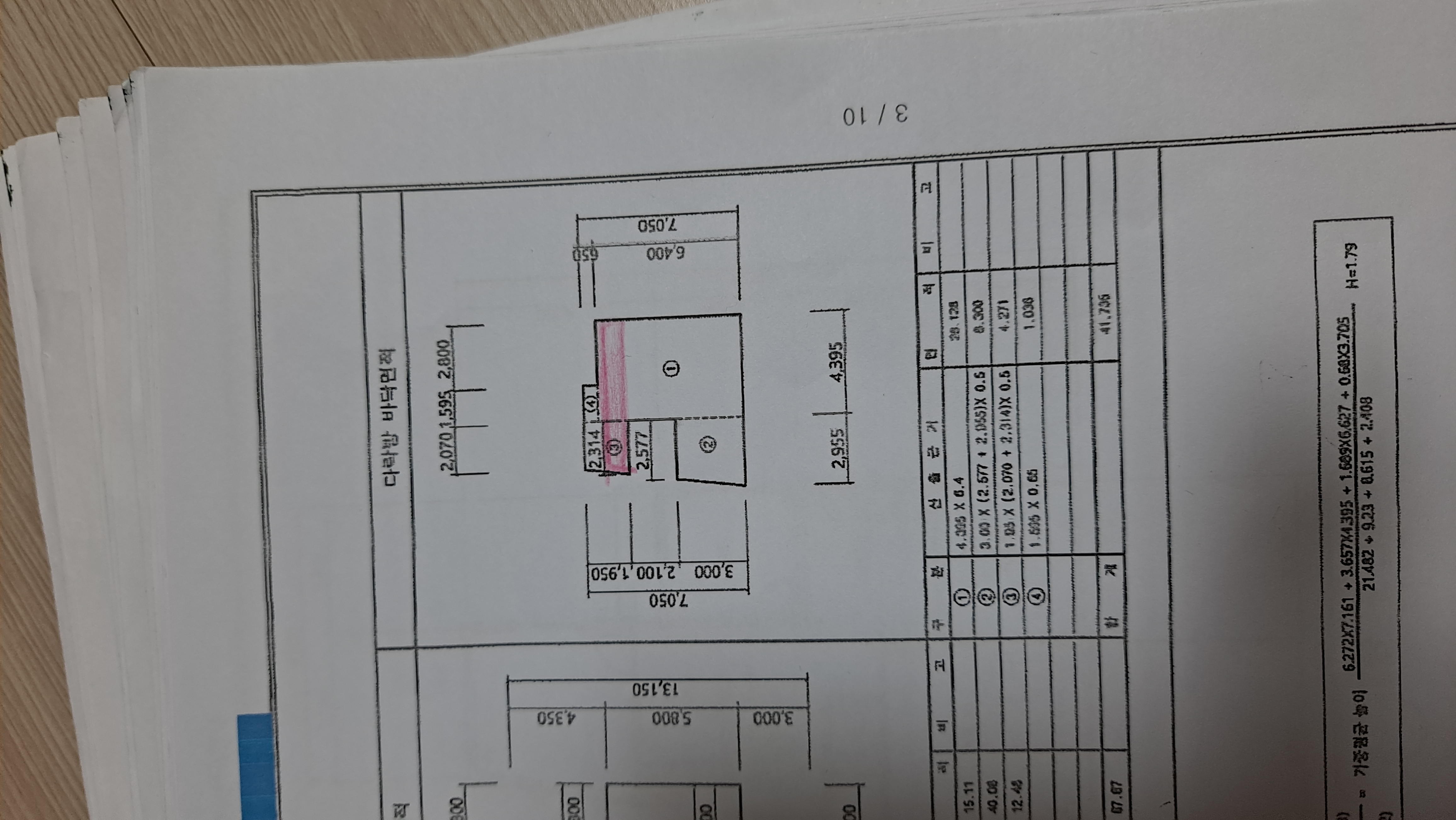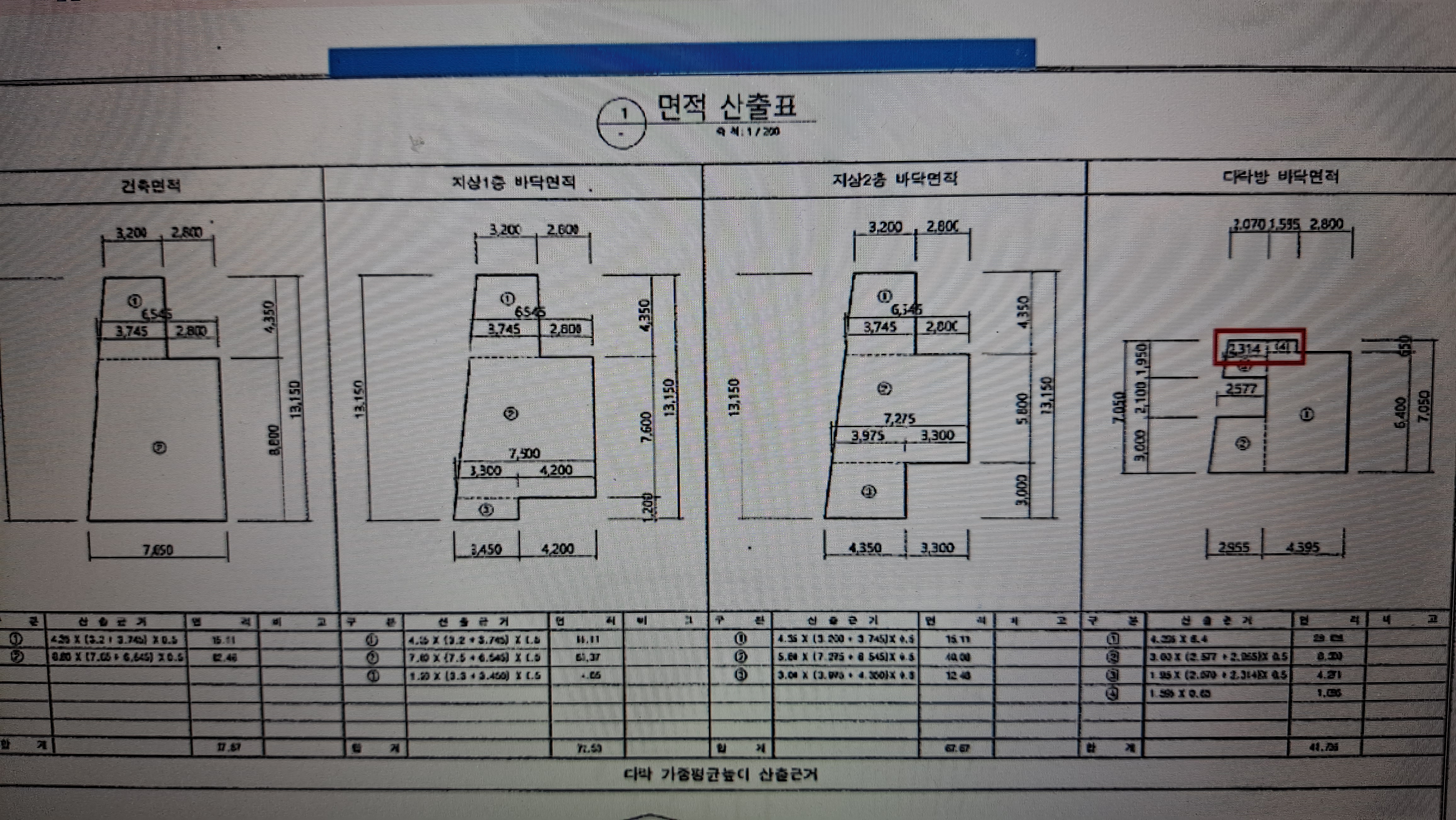 다락방 바닥면적 산출표 입니다