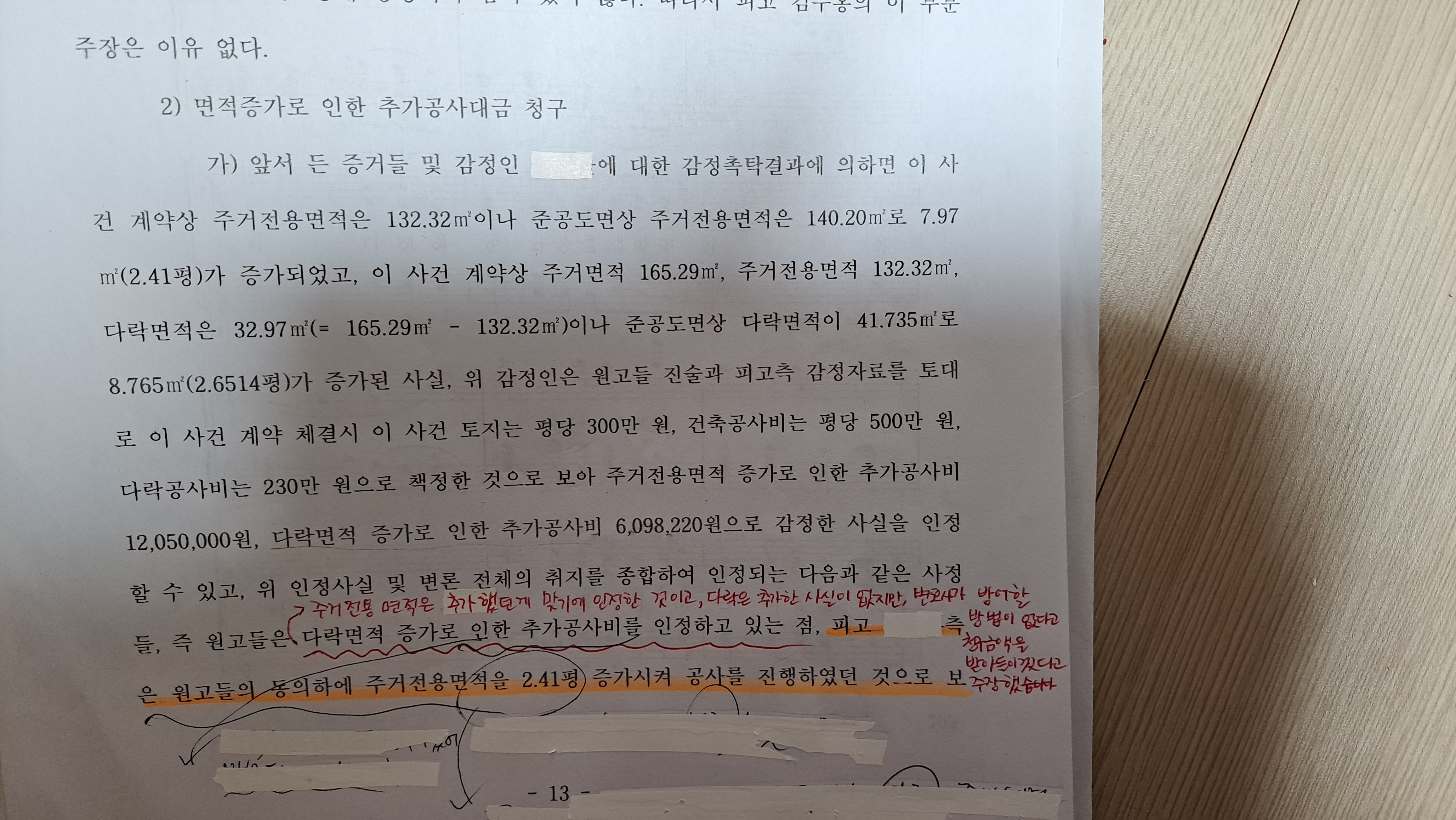 분양계약서 작성시 다락방 10평을 무상시공해주겠다고 해서 계약서에도 명시했는데요...손해배상소송하면서 위  평면도에서 10평과의 차액인2.63평을 추가공사비로 반소청구 하였습니다. 이부분 관련해서 가용면적 8.09평은 저희가 이의주장시