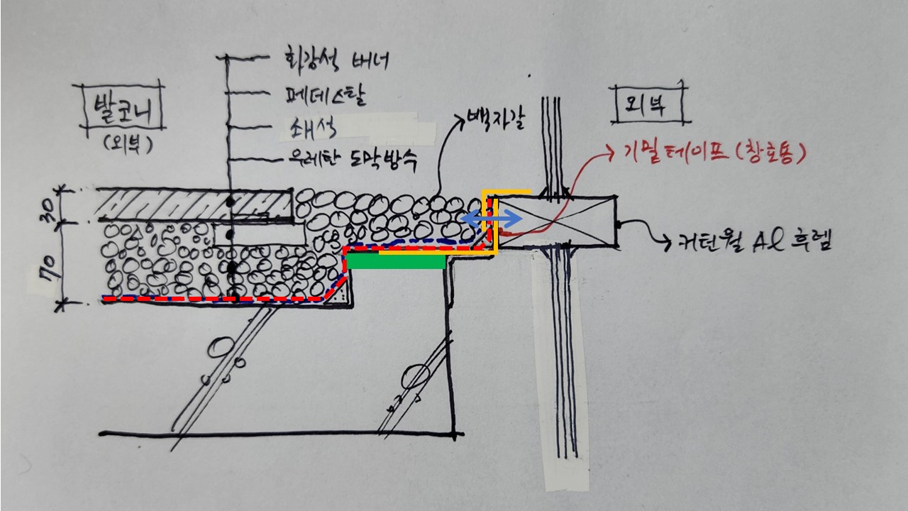 기밀테이프를 생각하게 되었었고 자착식 방수시트를 시공후 기밀이나 방수테이프
