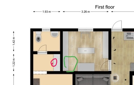 다행스럽게 이전 계획된 세탁공간(노란동그라미)