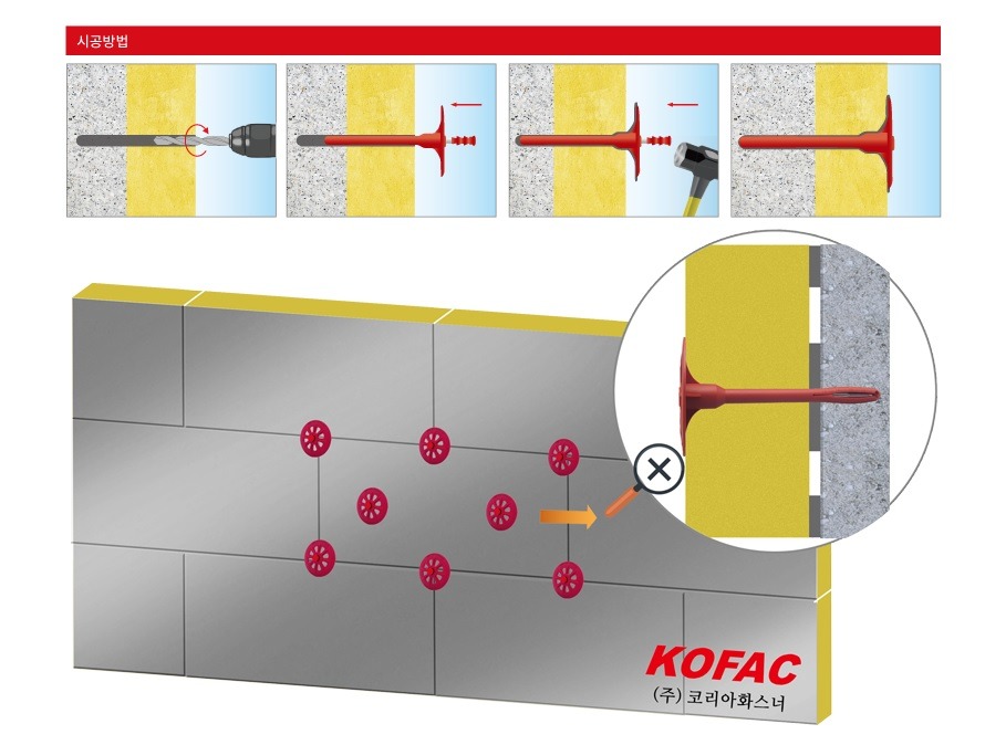 골조 - 단열재 - 화스너 - 1차 몰탈 - 메쉬 - 2차 몰탈 순서이고,