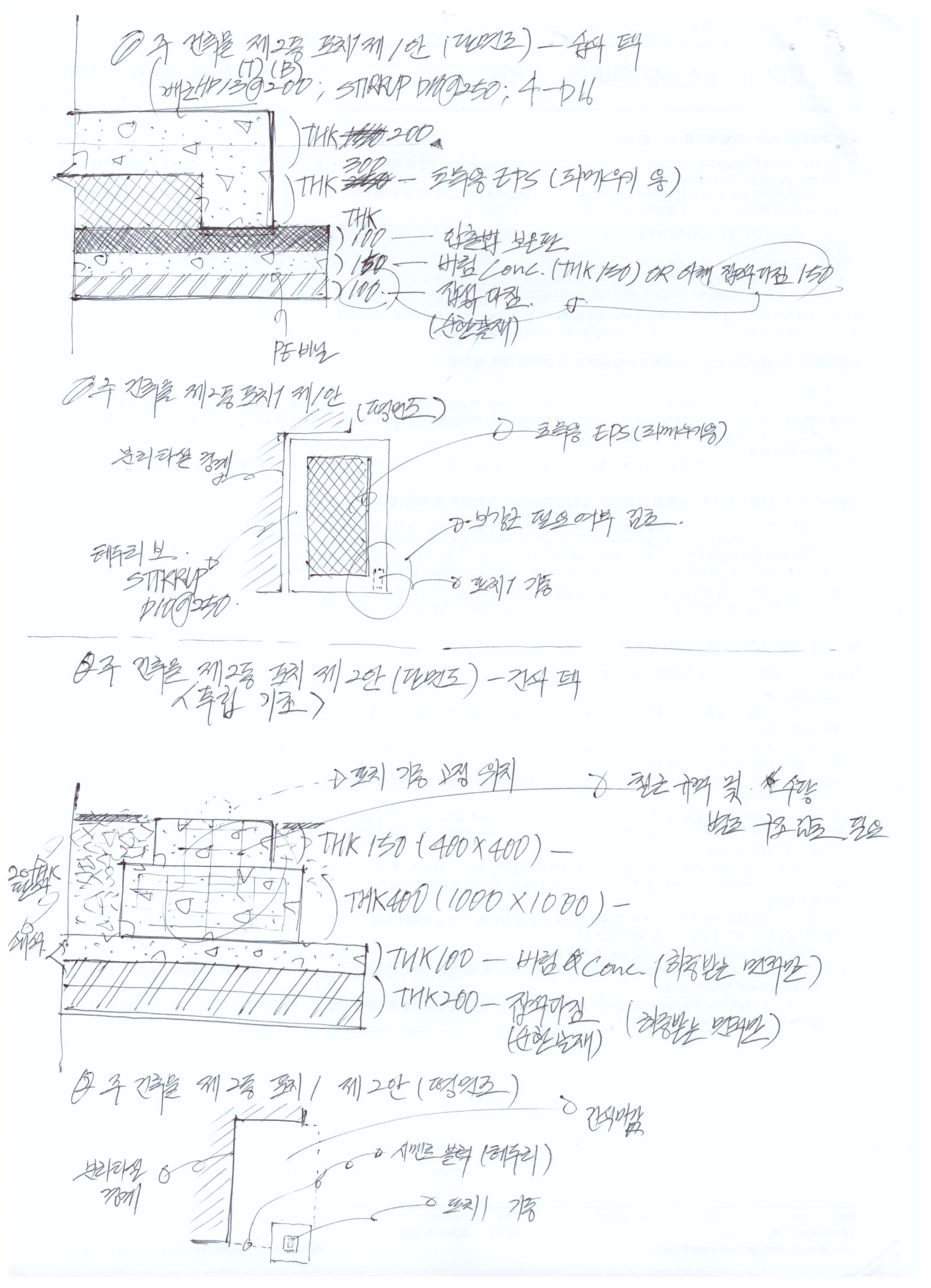 그럼데도 불구하고 이 모든 것은 구조기술사의 확인을 받으셔야 합니다. 기초판의 두께도 계산되어야 하고요.