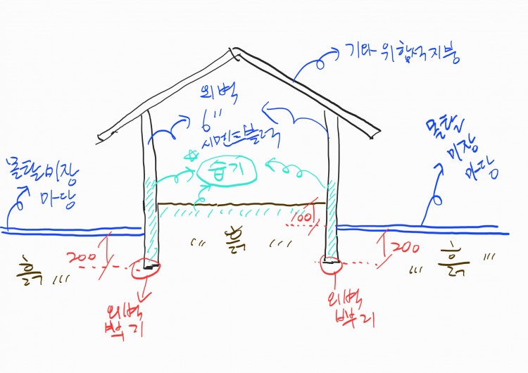 중간의 방수몰탈은 비용문제로 실시 할지말지 고민이 많은 상황이었습니다 공사기간과 양생문제도 걱정이 되었고요