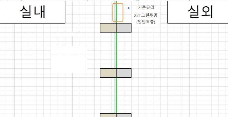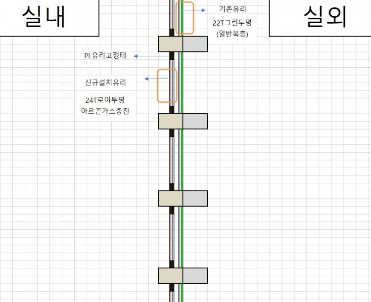 기존복층유리와 신규설치 유리사이에는 대략 20~30MM정도의 공간을 두고 설치할 예정입니다.