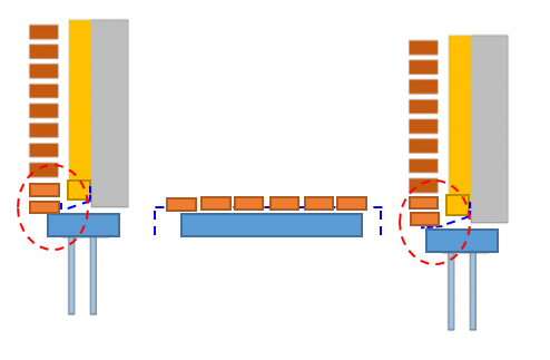 제가 생각 해본 안(아래 그림)은, 조적별돌 쪽으로 경사를 내고, 벽돌로 유입되지않게 후레싱을 상부로 접음.