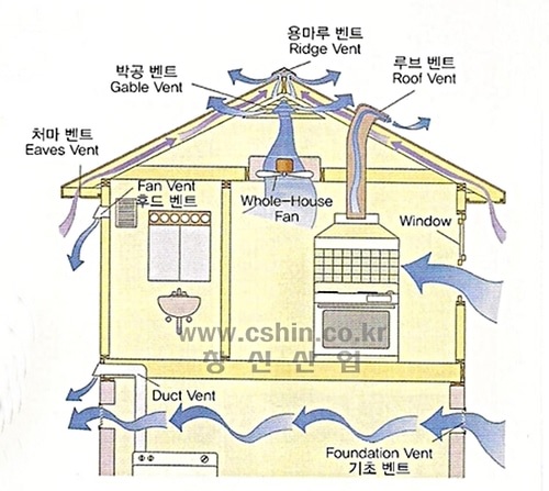 용마루벤트(Ridge Vent)와 처마벤트(Sofit Vent)가 없어지고