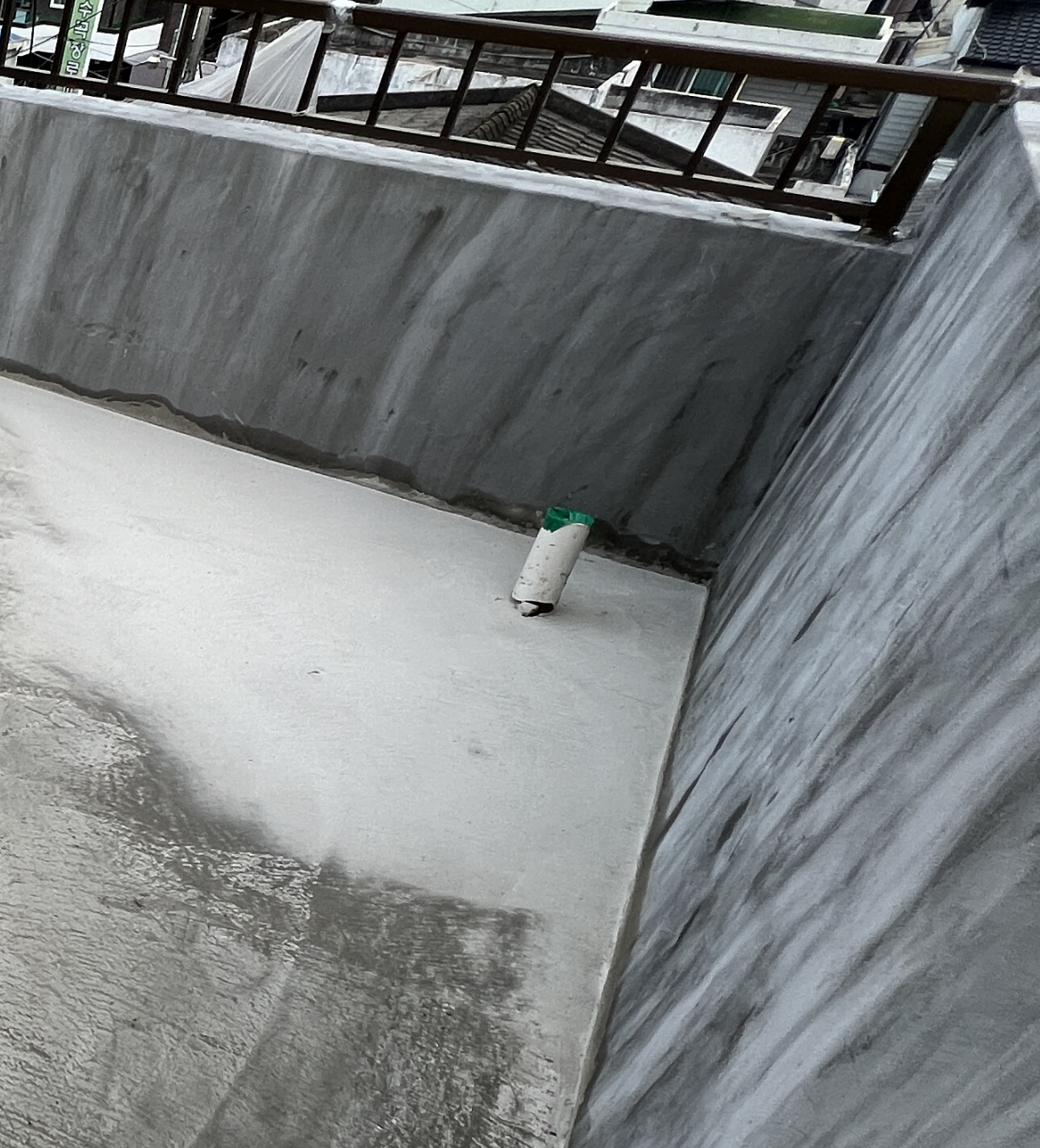 신축일 경우, 방수를 한 후에 몰탈+석재붙힘 을 할 수 있으나, 리모델링은 그 두께를 소화해 낼 수 없기에 지금처럼 마무리를 해야 합니다.