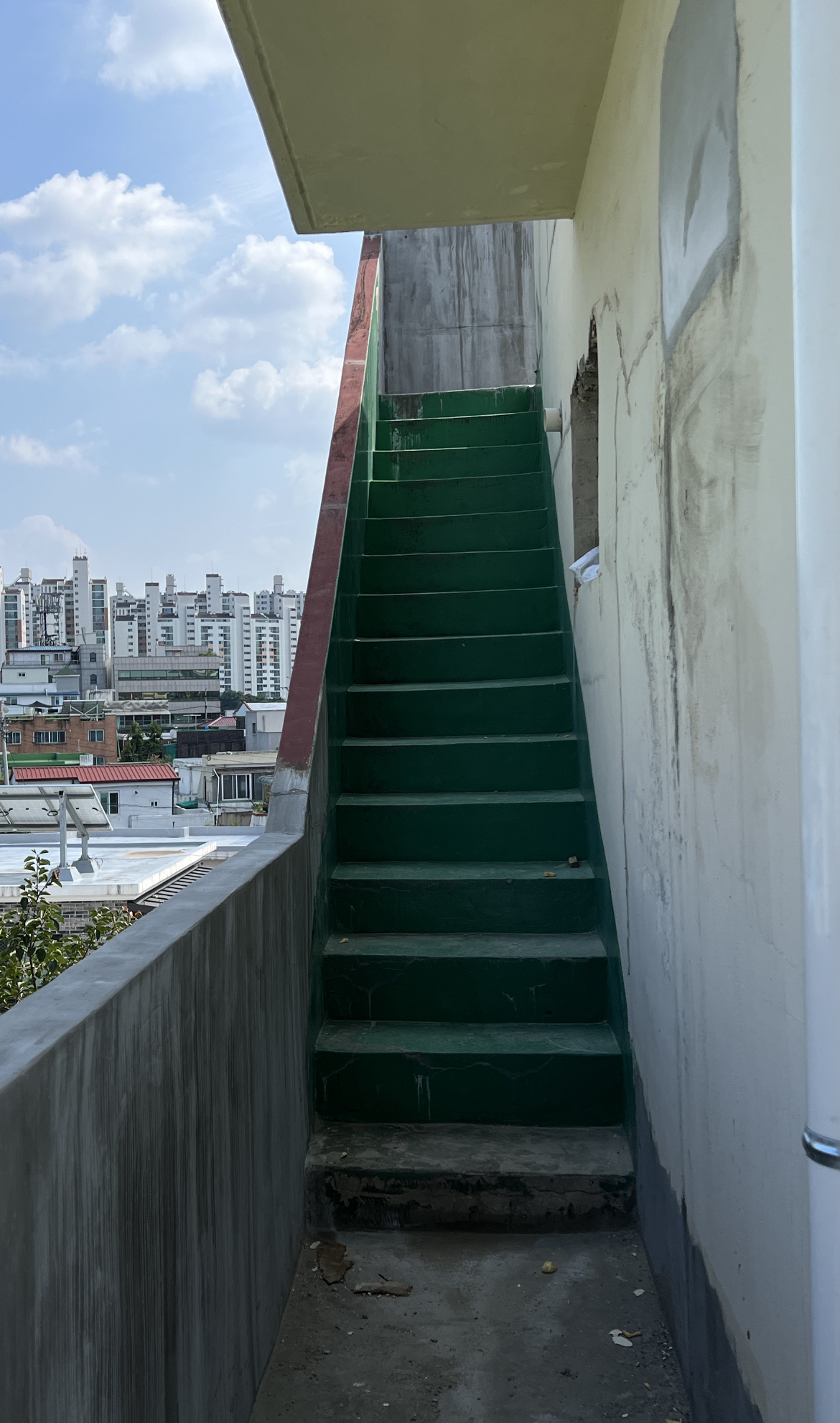 옥상으로 올라가는 계단만 우레탄을 못 벗겨냈어요..