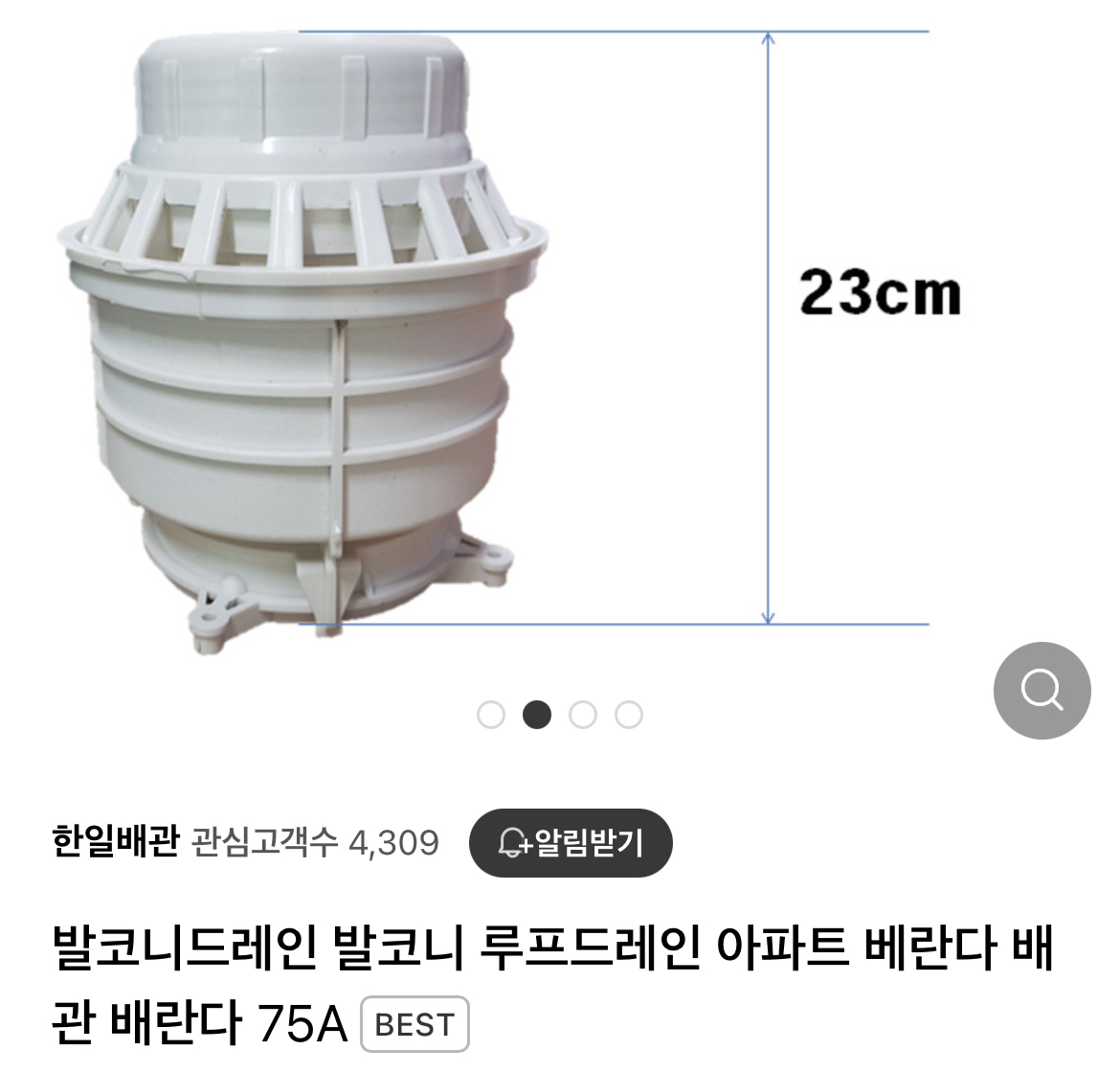 올려 주신 사진의 드레인은 신축시 콘크리트 슬라브에 매립하는 제품이며, 지금은 맞지 않습니다.