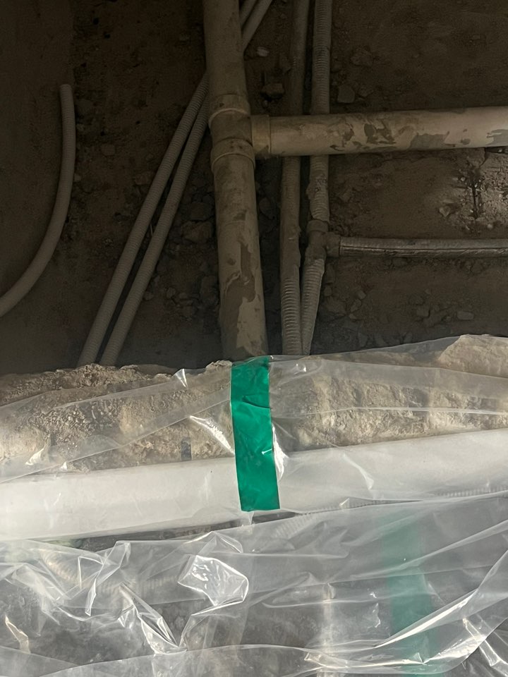 2.1. 하수관과 오수관의 일부 상부면만 누촐되는 것이므로,,, 하수관과 오수관의 일부 상부면과 몰탈이 맞닿는 부분에 도막방수를 할 때 부직포를 덧대어 최대한 추후 도막방수가 깨지지 않도록 하고,