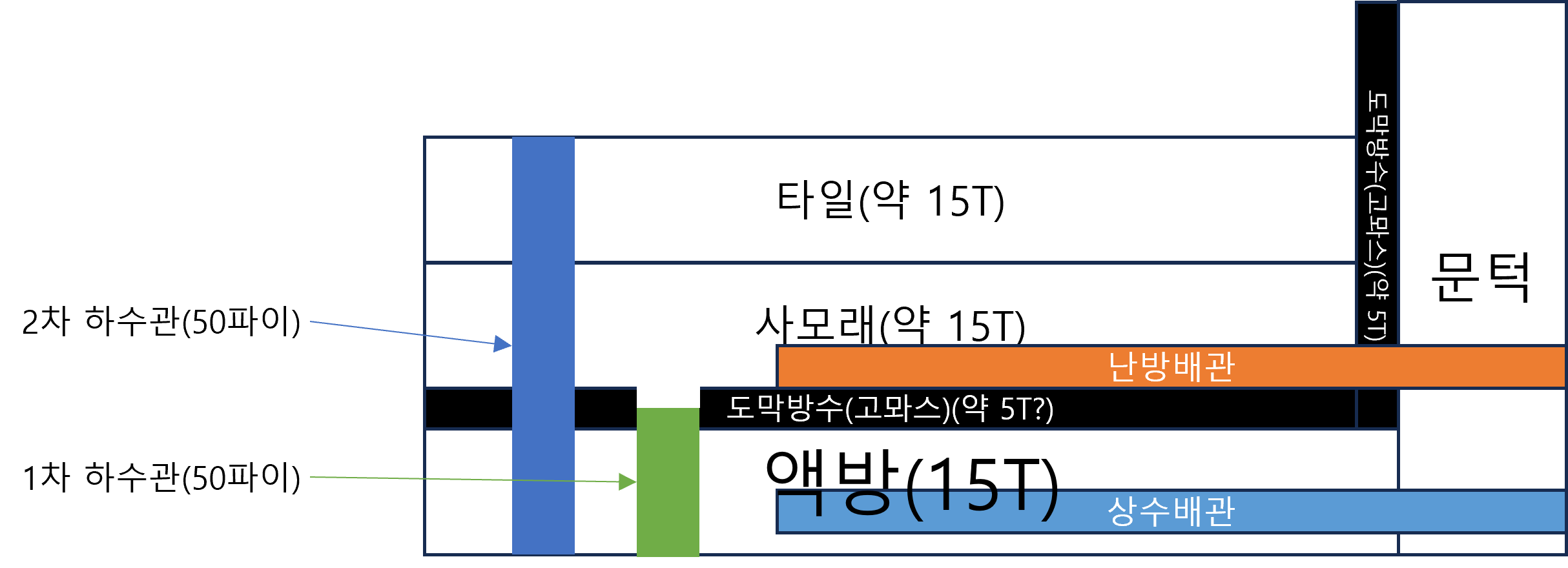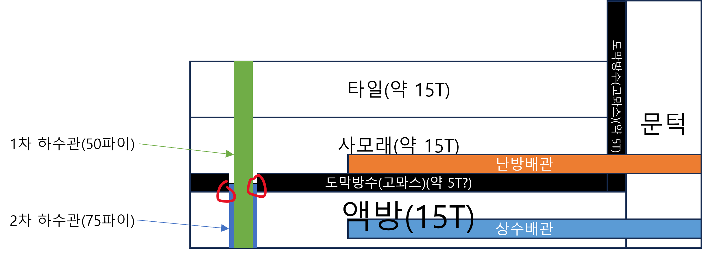 화장실 공정 전체를 이해하는 데 한 이틀 걸린 것 같습니다. 이중배수는 하고싶은데요.. 이런저런 방안을 생각하다가.. 다음과 같이 진행할까 생각중입니다.