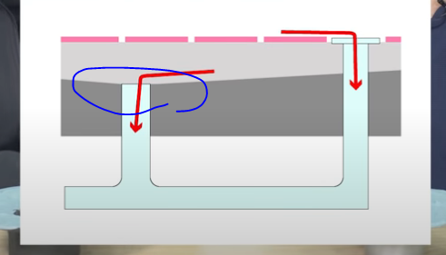 첨부한 이미지와 같이 2차 배수(사모래층)를 위한 배수구(푸른색, 2번)를 하나 더 만드는 것을 고려하게 되었습니다.