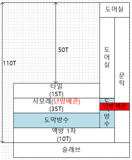 난방배관을 넣지 않았을 때의 화장실 바닥 층(layer) 구성 문의