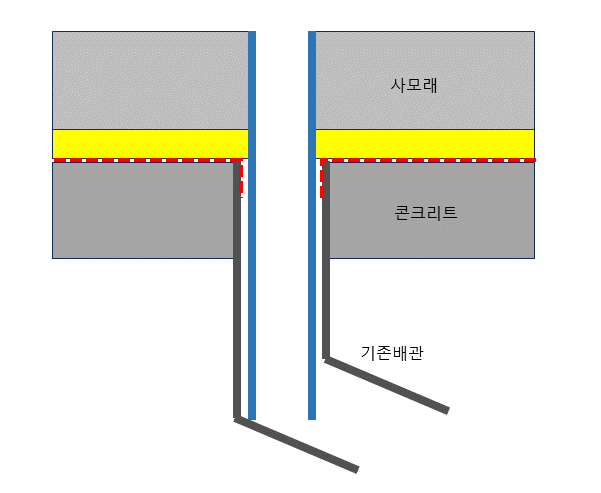 즉 배관을 묻는 몰탈을 시공하고, 그 위에 방수를 하는 개념입니다.