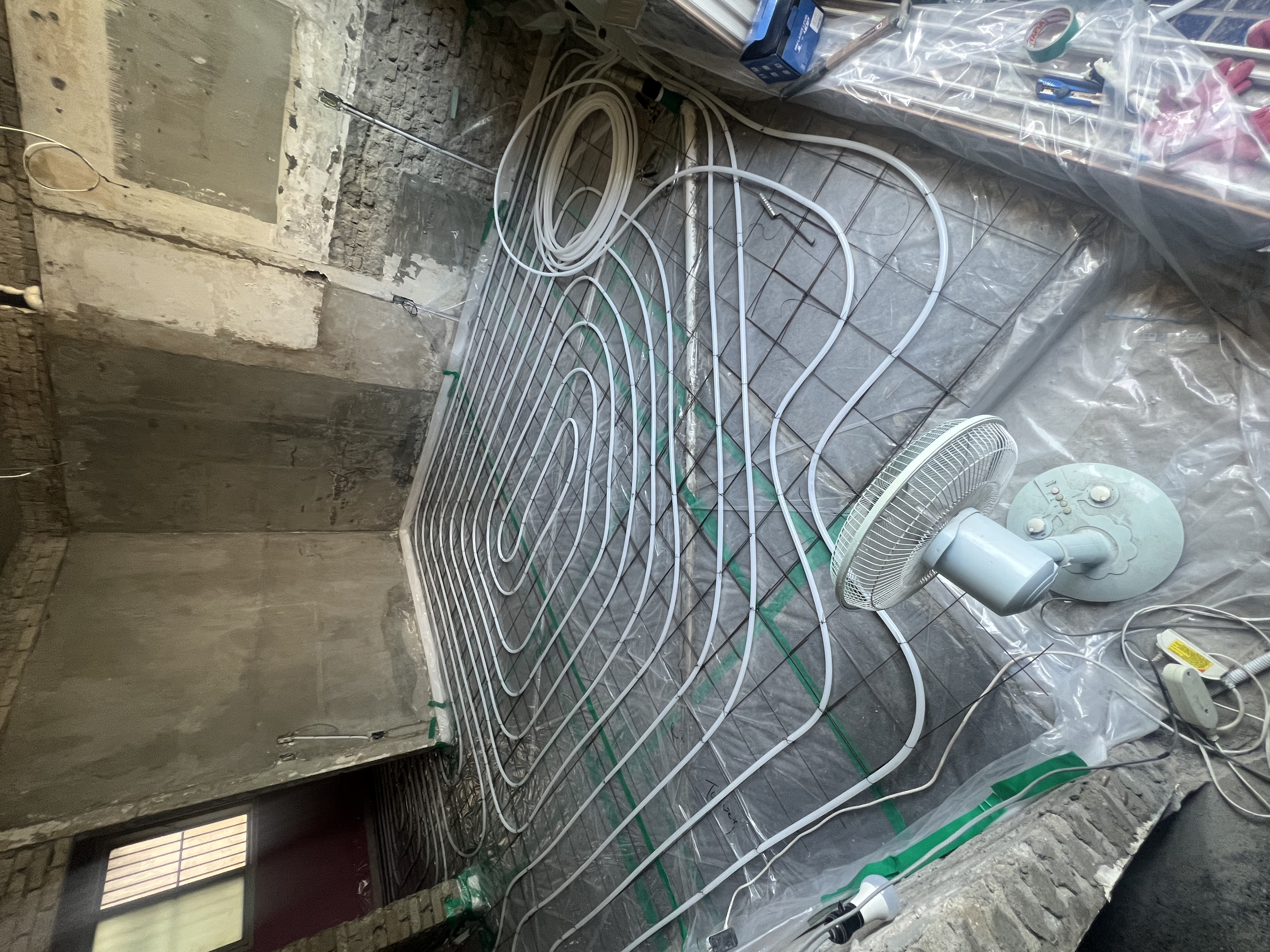 거실에 방통을 치려고 단열재 + pe비닐을 시공했는데, 화장실에 난방배관을 삽입하려면 pe비닐과 측면완충재를 뚫어야 하는데, 이부분 마감이 깔끔하지 못해 방통 칠 때 물이 샐 수 있어서..