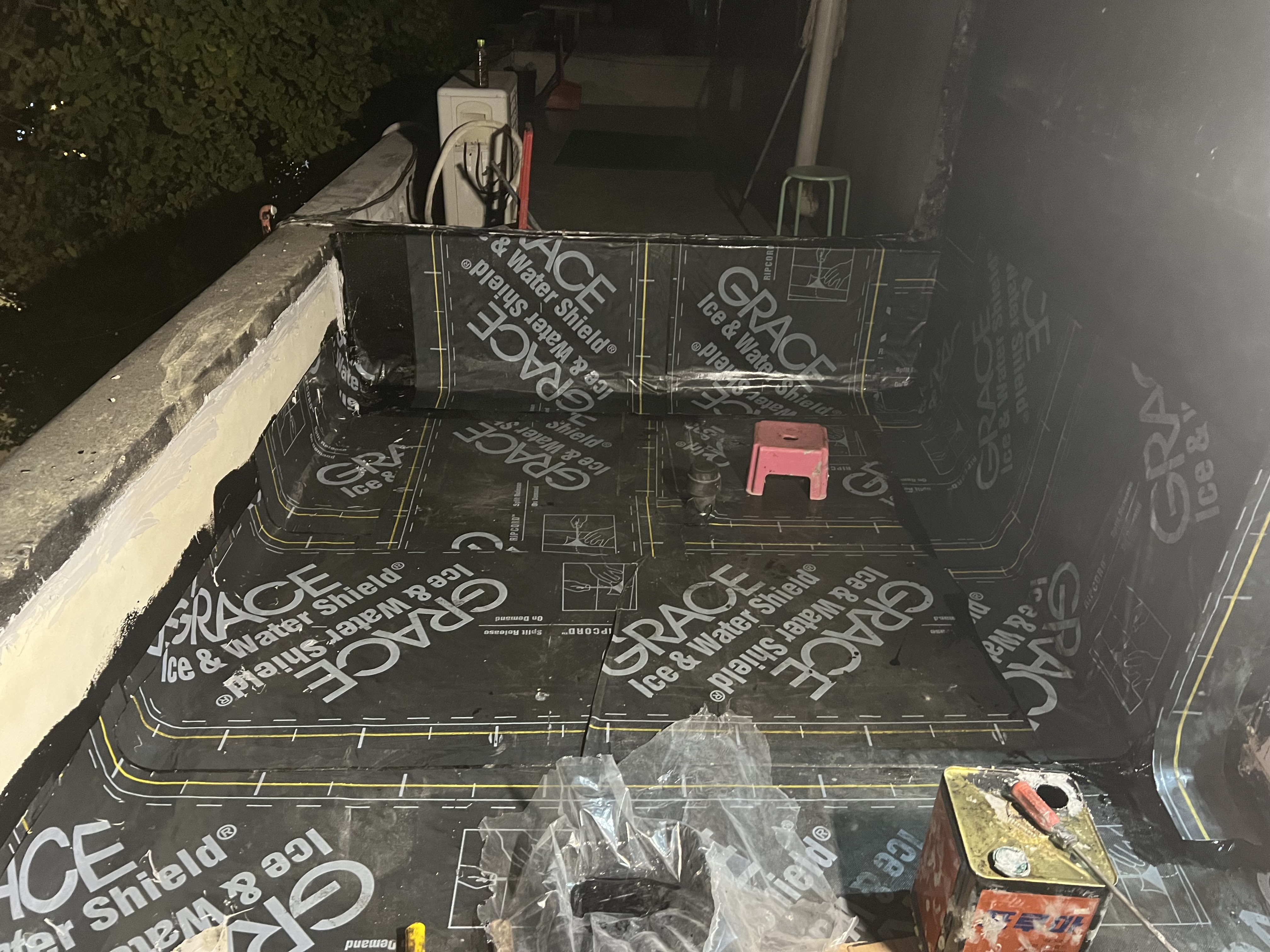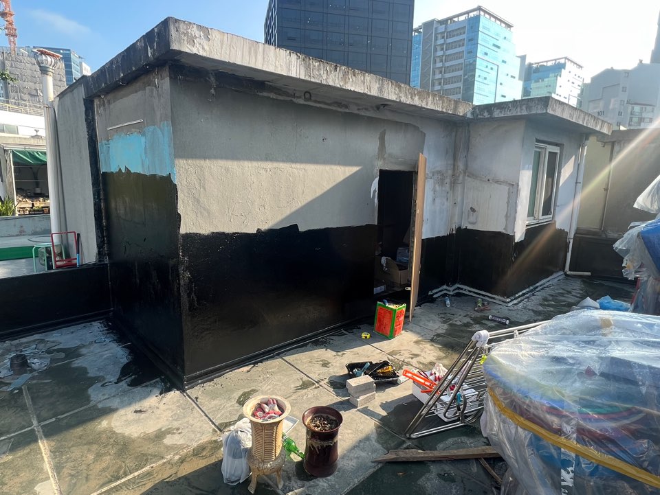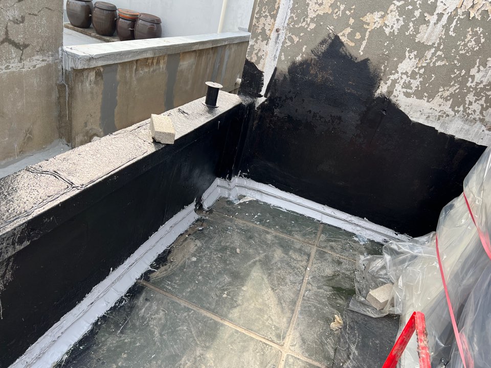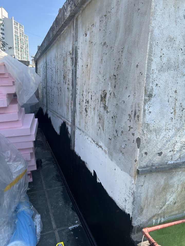 벽에 기존에 남아있던 페인트 긁어내고, 삼각면귀 만들고, 아스팔트 프라이머 도포하고, 시트방수지 붙이고 등등 전문가 부르기가 애매한 작업들을 제가 하구 있어요.