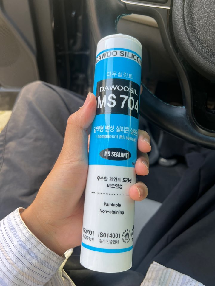 삼각면귀 대용으로 하는 실리콘은.. 말통으로 파는 실리콘을 사다 사용하시는 것이 가성비가 좋습니다. 실리콘 주걱으로 퍼서 바라는 거라서 바르는 것도 좀 더 용이 하기도 하고요..