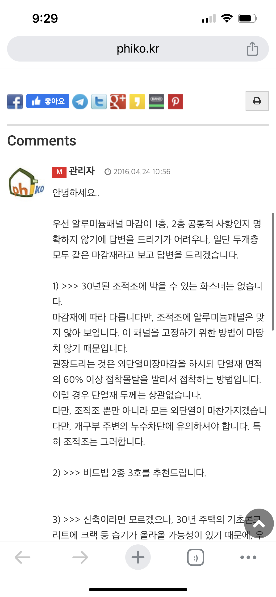 다만 건물의 안정성에 영향을 미칠만한 면적도 아니기에, 붉은벽돌 외벽이었다면 화스너를 장당 4개 정도 박아 주는 것은 괜찮습니다.
