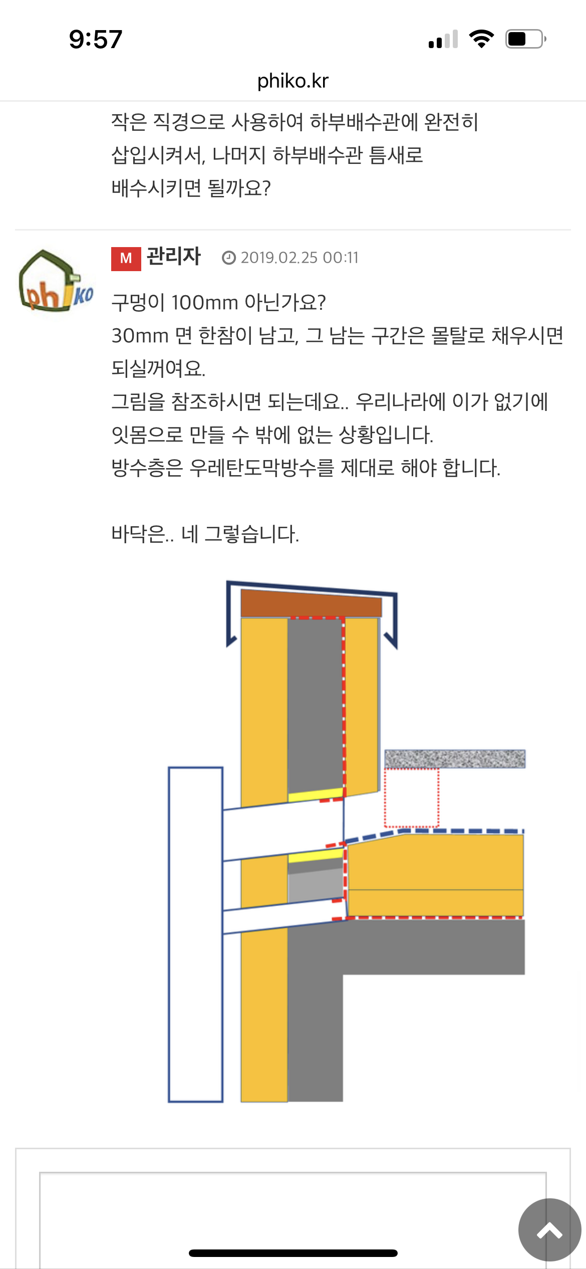 나머지 내용에 대해서는 생각을 좀 더 숙고하고 궁금한 것을 추가로 여쭈어보면 될 것 같고, 방수턱 사진은 당연히 사용해주셔도 됩니다. 다만, 너무 대충 찍은 사진이라 짐을 좀 치우고 깔끔하게 내일 찍어서 다시 올리도록 하겠습니다. 감사합니다!