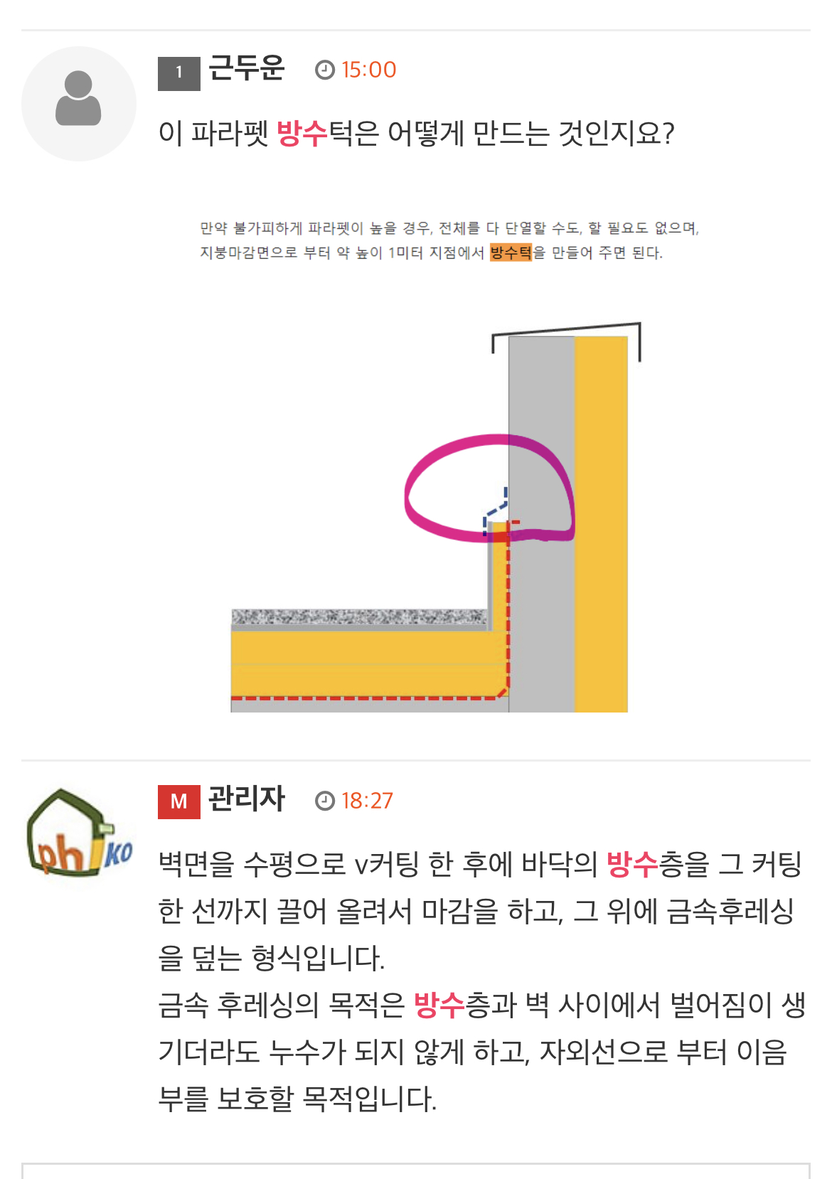 아닙니다 ㅎㅎ 접자재에서 역전지붕용 배수판 등 전용 제품을 팔아서 고민을 많이 덜었습니다 답변에 감사드립니다