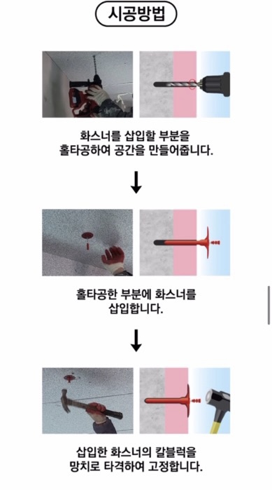 1. 코리아화스너에서 화스너건없이 드릴과 망치만으로 시공할 수 있는 화스너를 팔더라구요. 한번 사용하고 사용할 일이 없기도 하고 비용도 만만찮아 이걸로 외단열재를 고정하려고 하는데 괜찮을지요?