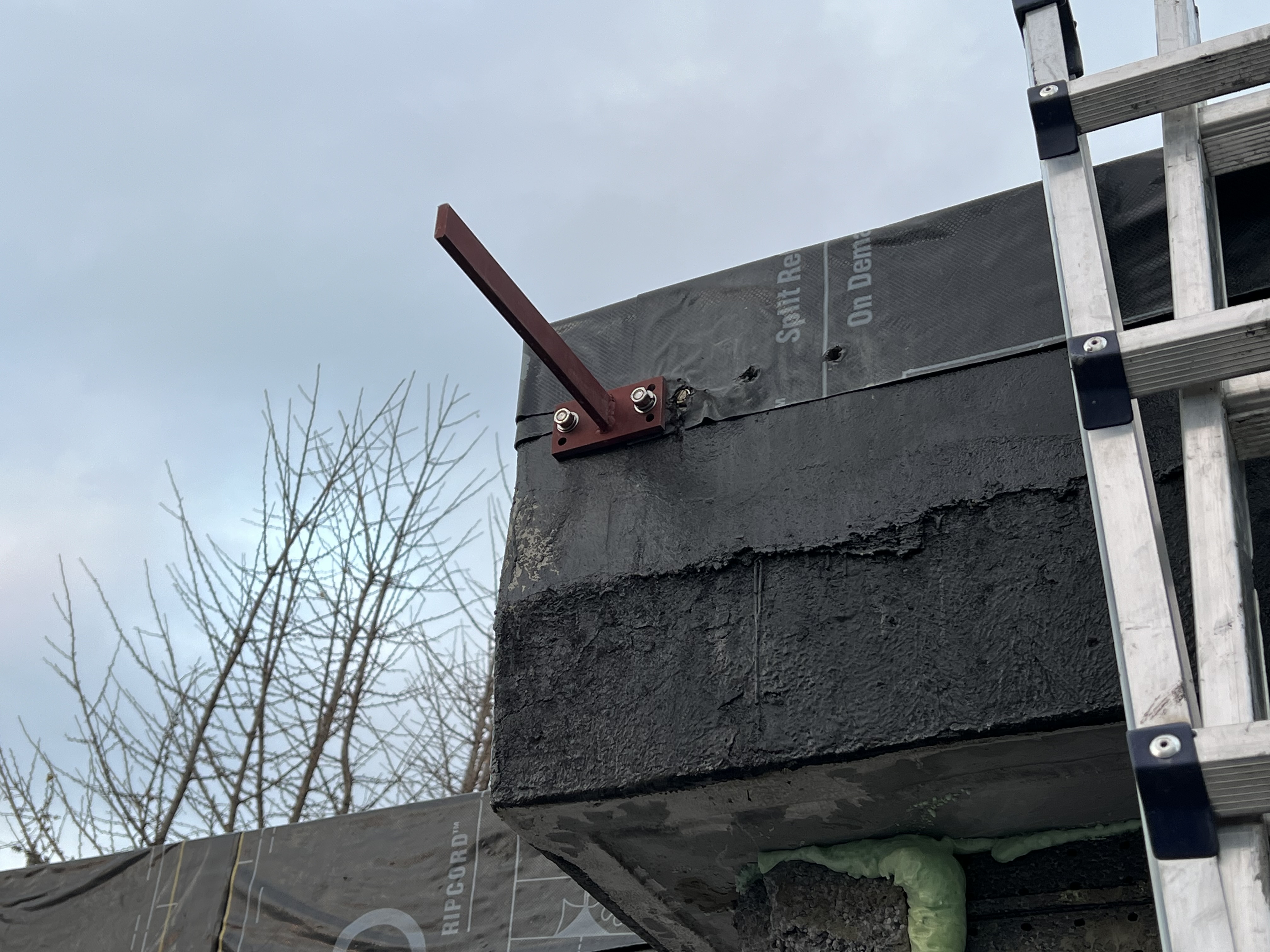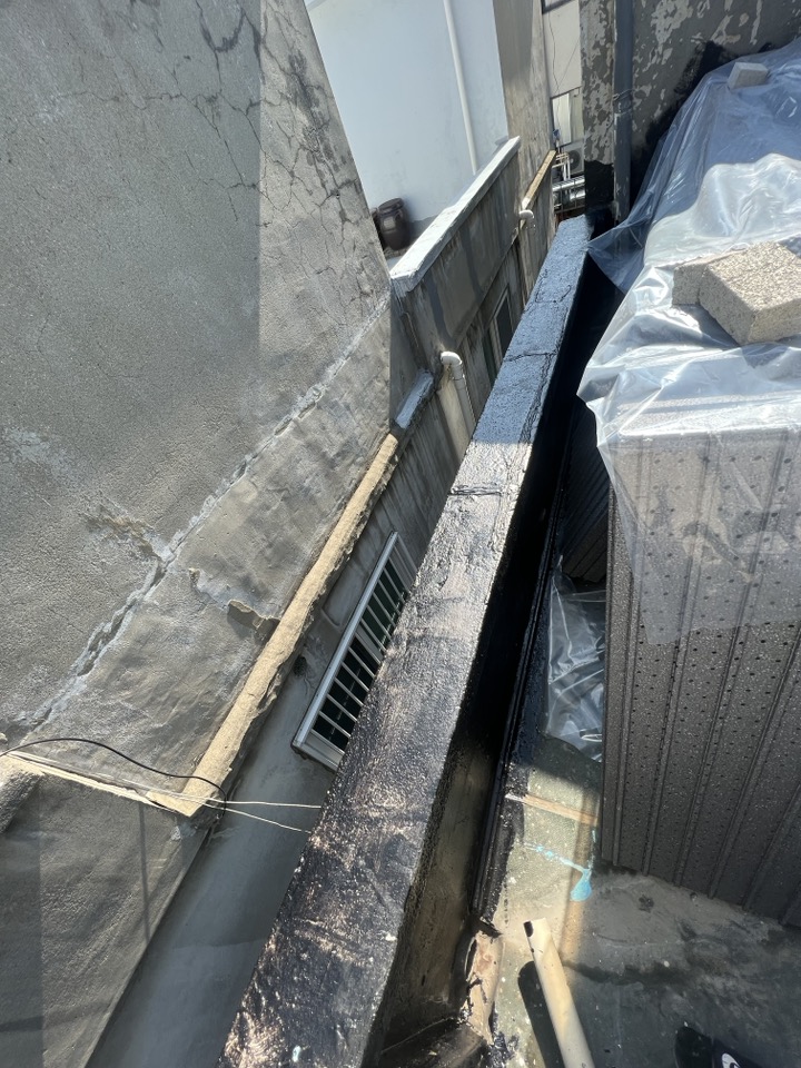 여기서 주의하실 부분은 시트방수와 투습방수지가 파라펫과 만나는 부위입니다. 시트방수로 파라펫을 덮고 자외선에 노출되지 않도록 마감재가 시트를 다시 덮어주어야 합니다.