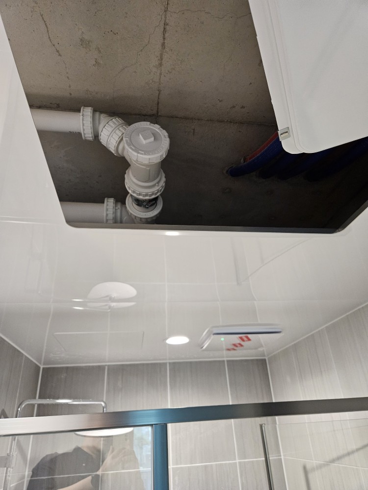 안방 화장실 천장에 단열이 전혀 안되어 있고, 콘크리트가 그대로 노출이 되어 있는데