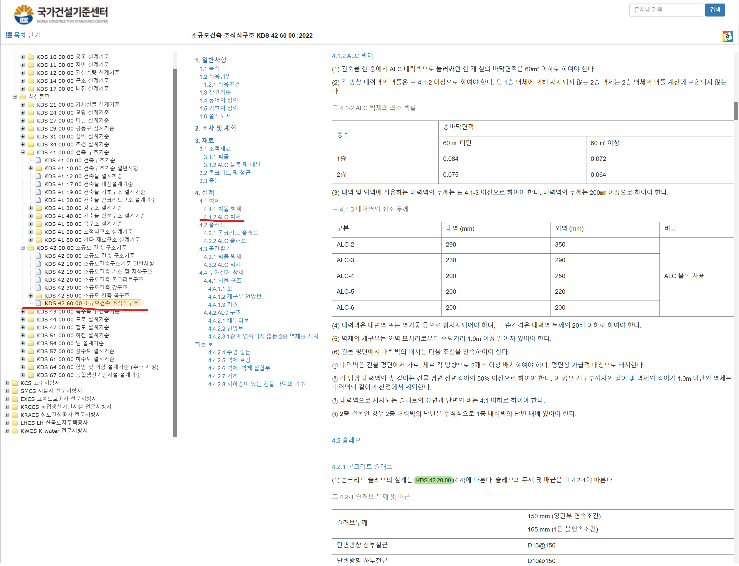 2. ALC의 경우 최신 건축법이 2019/11월 고시된 것으로 알고 있는데 구조체의 두께가 대략 얼마인지?