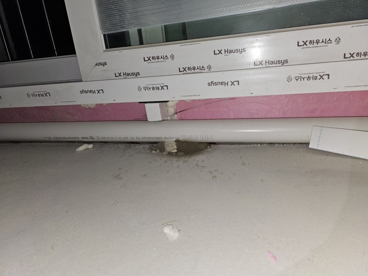 턴키에서 이 공틀을 절단하고 창호 밑에 배관이 지나가도록 시공하였습니다.