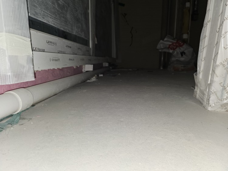 창호업체에서 공틀을 잘라 창호 하단부를 지지해놓은 상태였는데